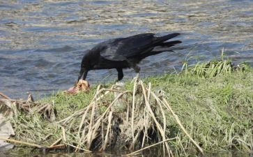 第二只乌鸦向南飞。它飞呀飞呀,口渴的.很厉害。真巧,它看见了一只瓶子,瓶子里积了不到半瓶子雨水。它赶紧把嘴伸进去,可是,嘴巴离水面还差一大截,怎么办呢?它想起了妈妈的故事,就用嘴巴衔了一些碎石块,丢进瓶子里。可是小石块都快堆到瓶口了,瓶里的水也没涨起来。它生气了,用翅膀狠狠地扫了一下瓶子,瓶子被打翻了,水流了出来。它抢上去,才喝了几滴,水就全没了。第二只乌鸦也渴死了。